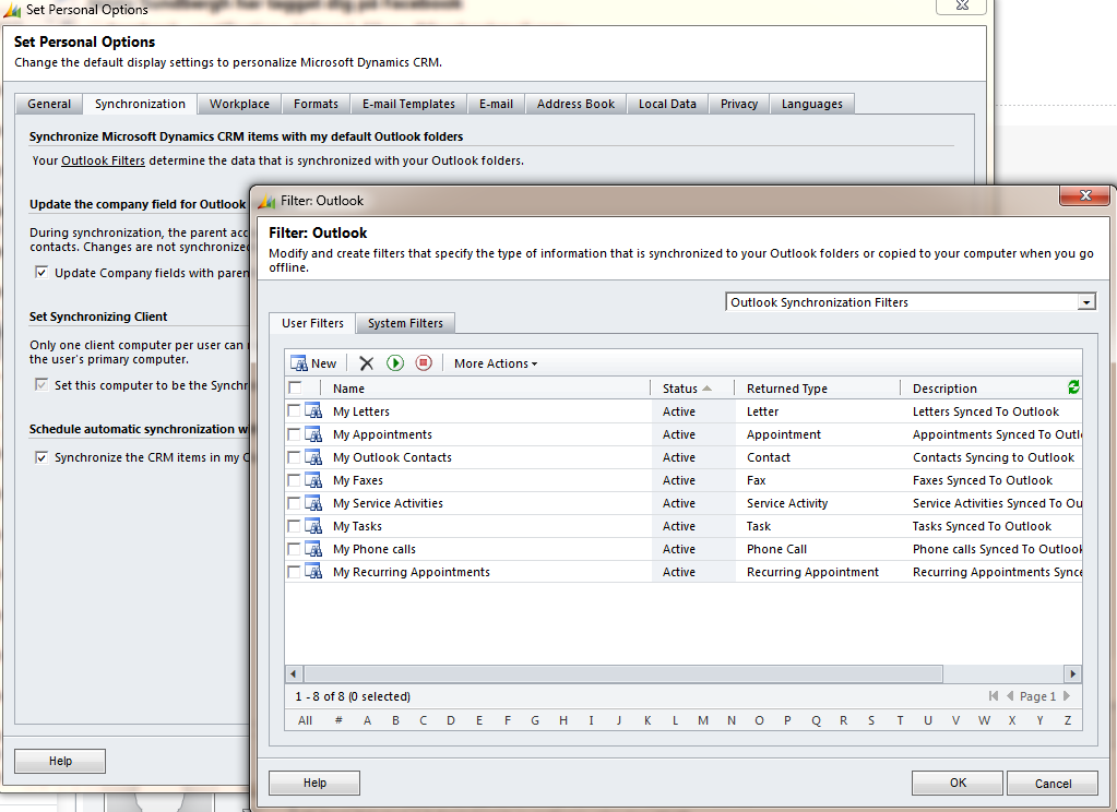 gustafwesterlund: Switching on and off appointment synchronization in CRM for Outlook
