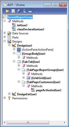 ============== 1. In the AOT, create a new table named InventBuyerGroupList. Do not change any of the properties as this table is for demonstration only. 2. Add a new field to the table with the following properties (click on Yes if asked to add a new relation to the table): Property Value Type String Name GroupId ExtendedDataType ItemBuyerGroupId 3. Add another field to the table with the following properties: Property Value Type String Name CustAccount ExtendedDataType CustAccount 4. In the AOT, open the InventBuyerGroup form and change the design properties as follows: Property Value Style Auto 5. Add a new Tab control with the following properties, to the bottom of the design: Property Value Width Column width Height Column height 6. Add a new TabPage control with the following properties to the newly created tab: Property Value Name BuyerGroups Caption Buyer groups 7. Add another TabPage control with the following properties to the newly created tab: Property Value Name Customers Caption Customers 8. Move the existing Grid control to the first tab page and hide the existing Body group by setting the property: Property Value Visible No 9. The form should look similar to the following screenshot: 10. Add the following line to the form's class declaration: SysListPanelRelationTable sysListPanel; 11. Override the form's init() method with the following code: public void init() { container columns; #ResAppl columns = [fieldNum(CustTable, AccountNum)]; sysListPanel = SysListPanelRelationTable::newForm(element, element.controlId( formControlStr(InventBuyerGroup,Customers)), "Selected", "Available", #ImageCustomer, tableNum(InventBuyerGroupList), fieldNum(InventBuyerGroupList,CustAccount), fieldNum(InventBuyerGroupList,GroupId), tableNum(CustTable), fieldNum(CustTable,AccountNum), columns); super(); sysListPanel.init(); } 12. Override the pageActivated() method on the newly created Customers tab page with the following code: public void pageActivated() { sysListPanel.parmRelationRangeValue(InventBuyerGroup.Group); sysListPanel.parmRelationRangeRecId(InventBuyerGroup.RecId); sysListPanel.fill(); super(); } 13. In order to test the list, open Inventory and warehouse management | Setup | Inventory | Buyer groups, select any group, go to the Customers tab page and use the buttons provided to move records from one side to the other. You could also do a double-click or drag-and-drop with your mouse: Источник: http://axmas.blogspot.com/2012/11/bu...able-list.html