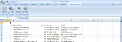 ============== A small example of Dynamics AX 2009 , OBA, .NET BC & Web Services (AIF). I found this OBA thing pretty interesting and did a simple demo which enables a developer to use VSTO to customize Excel which connects to AX 2009 using 2 ways (.NET BC & AIF WS) and retreives the customer list and populates the excel sheet. A very simple example with great potential. Basically the demo consists of customizing the Ribbon in Excel 2007, adding buttons which fetches the customer master from AX 2009 using .NET BC & AIF WS. The sample code (VS 2008) is also uploaded. You can download this and customize it. I have used the base AX CustomerService Service as a sample WS. You need to change the Web Reference in the project file. The sample project file is uploaded below. Happy DAX-ing :) Источник: http://daxguy.blogspot.com/2009/05/a...lications.html