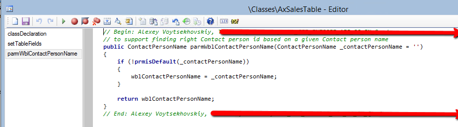So, our goal is to find a way to map an internal contact person ID to a given name. Something similar to what we do by selecting a contact from the drop-down list in Sales order, which is actually an Edit-method.