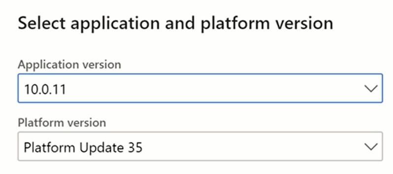 Select application and platform version, environment topology, and environment name & size.